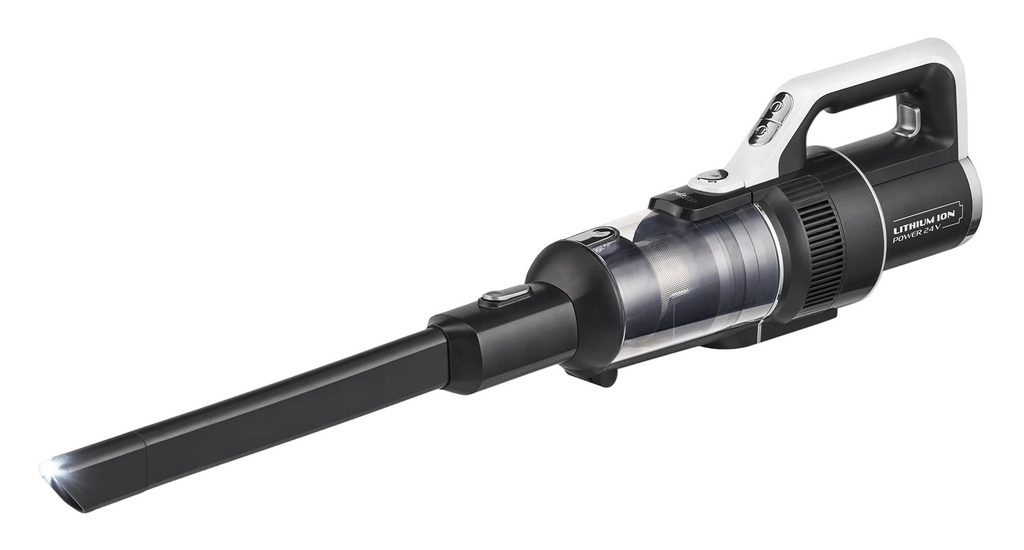This model includes a long crevice nozzle with an LED light for precise cleaning in dark corners and can be easily converted into a lightweight handheld vacuum with a single motion, perfect for stairs, furniture, and car interiors. The practical charging station and extensive accessories, such as extension tubes, small crevice nozzles, and brushes, enhance its versatility for various cleaning scenarios.