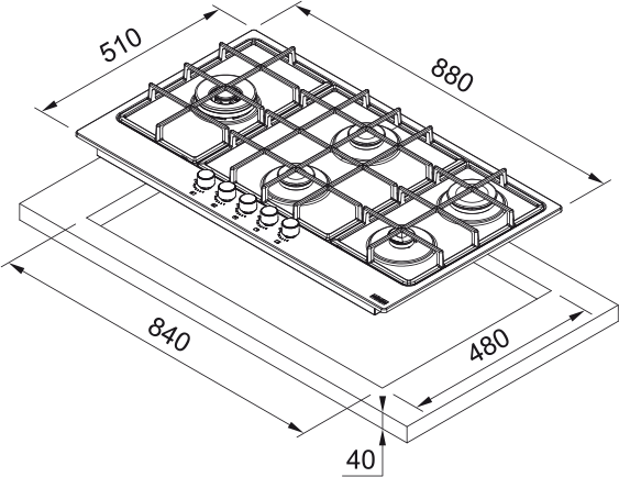 Type: Built-in gas hob with 5 burners
