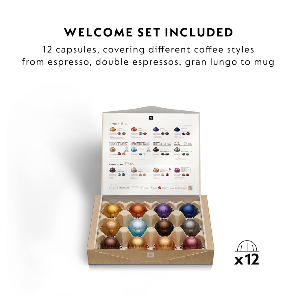 Includes complimentary starter pack with 12 Vertuo capsules Centrifusion™ Tech